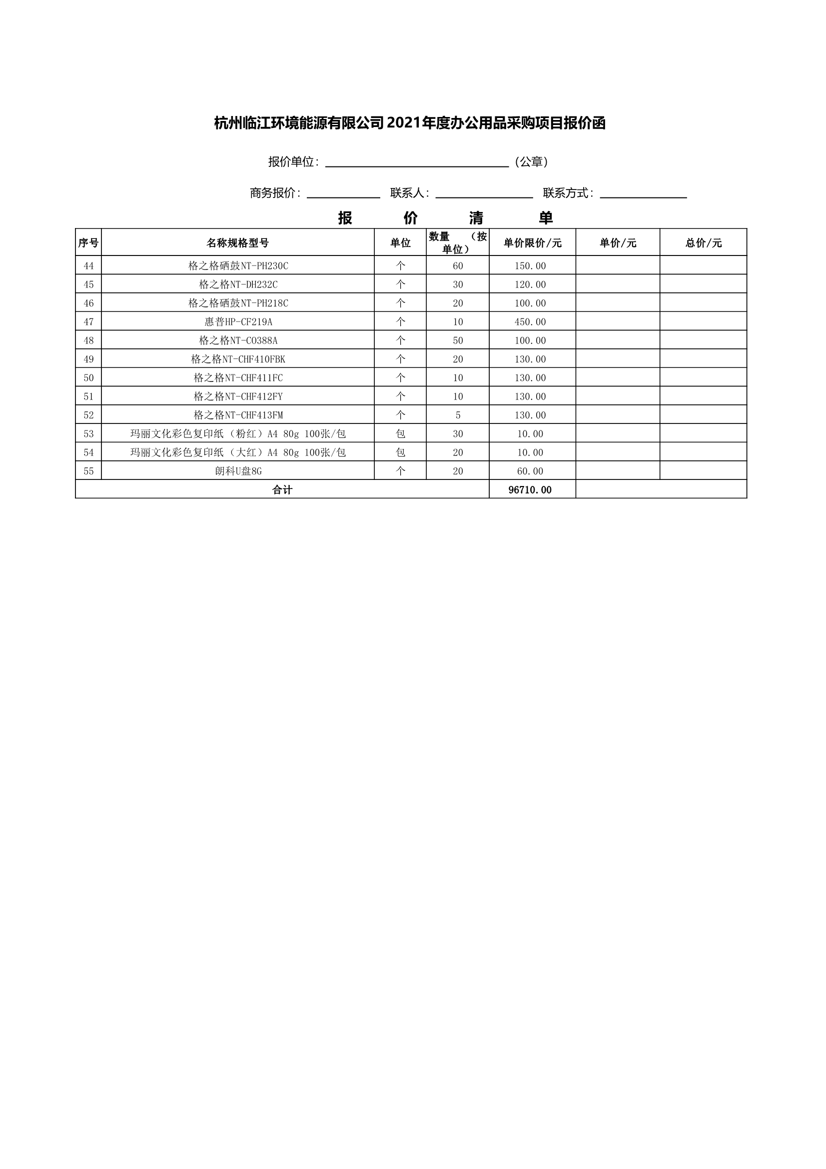 杭州臨江環境能源有限公司2021年度辦公用品采購項目報價函.xlsx